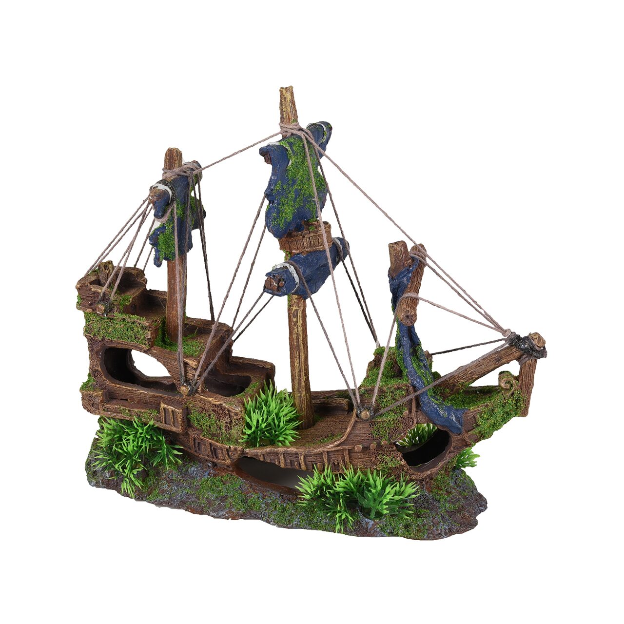 Corpul deteriorat și acoperit de alge al unei corăbii reprezintă decorul acvatic clasic, care conferă acvariilor de apă dulce sau sărată un aer de naturalețe și exotism.