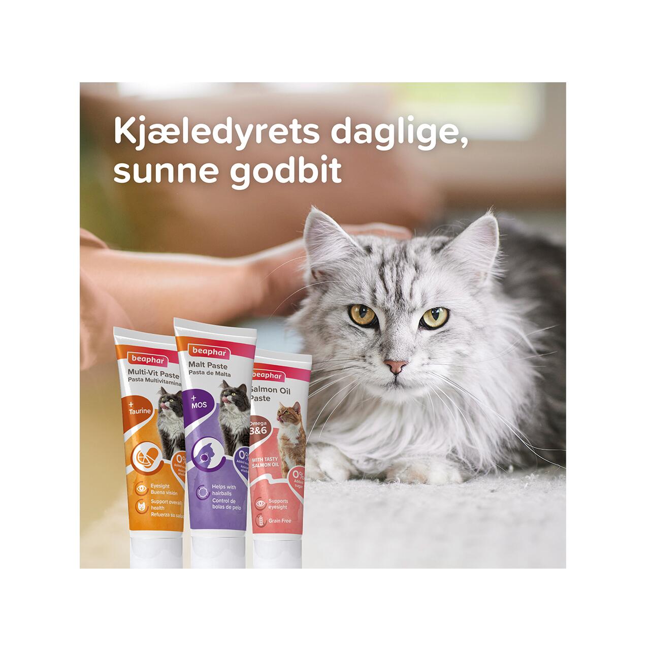 O pastă multivitamine delicioasă, cu dublă acțiune, pentru pisici, care ajută la menținerea sănătății și vitalității optime.