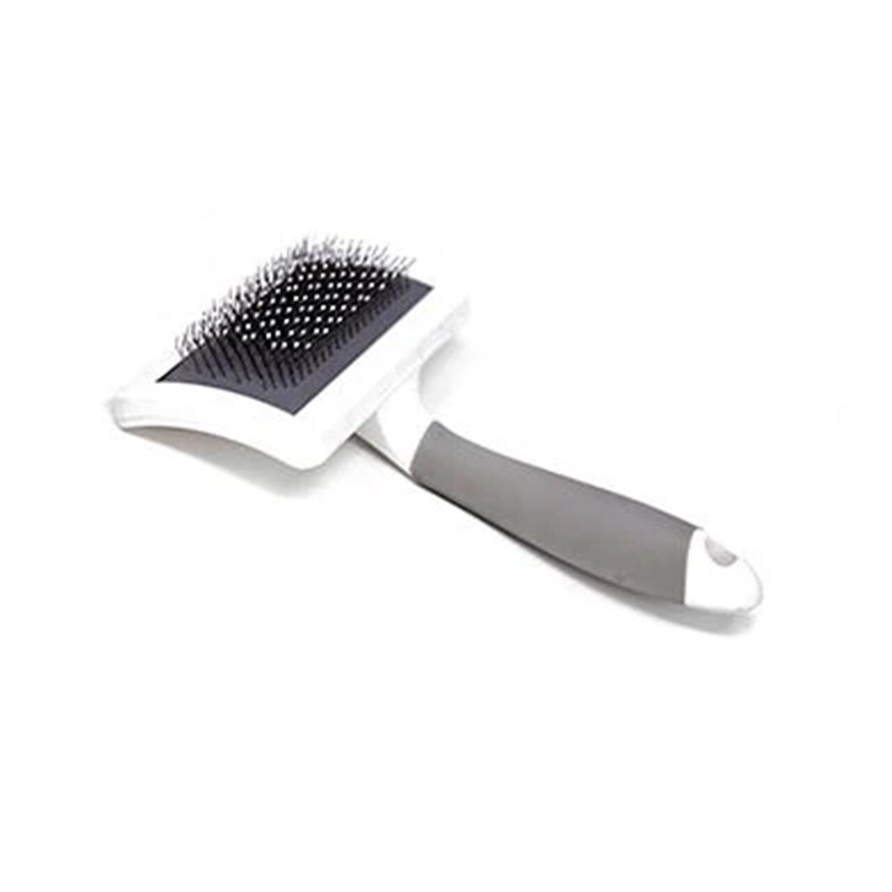 Peria de îngrijire este fabricată din mâner de plastic cu din oțel inox și puncte din plastic de protecție care asigură întreținerea blănii animalului de companie și masarea pielii.