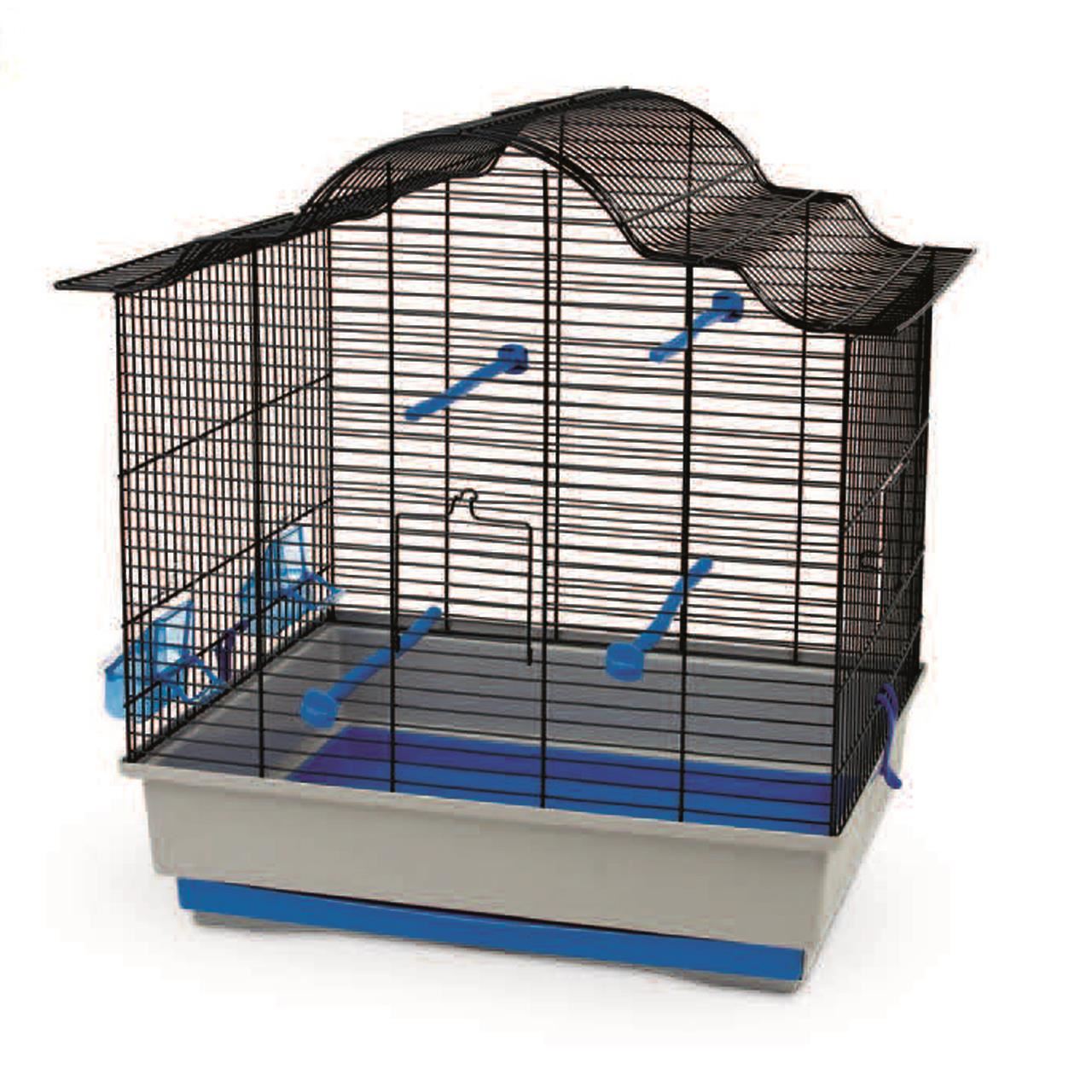 Această colivie este confortabilă și ideală pentru păsările exotice. Produsul are baza coliviei detașabilă, iar ca accesorii dispune de tăvițe pentru mâncare și stinghii.