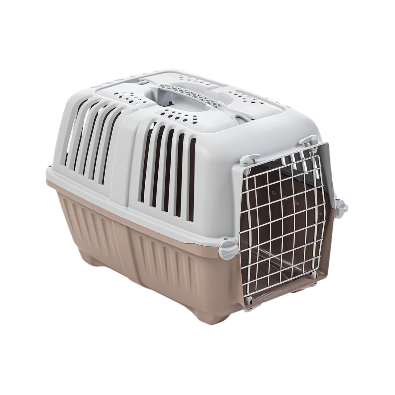 Cușcă transport pentru câini și pisici, igienică și spațioasă din plastic tare și durabil, cu mâner pentru a facilita utilizarea.