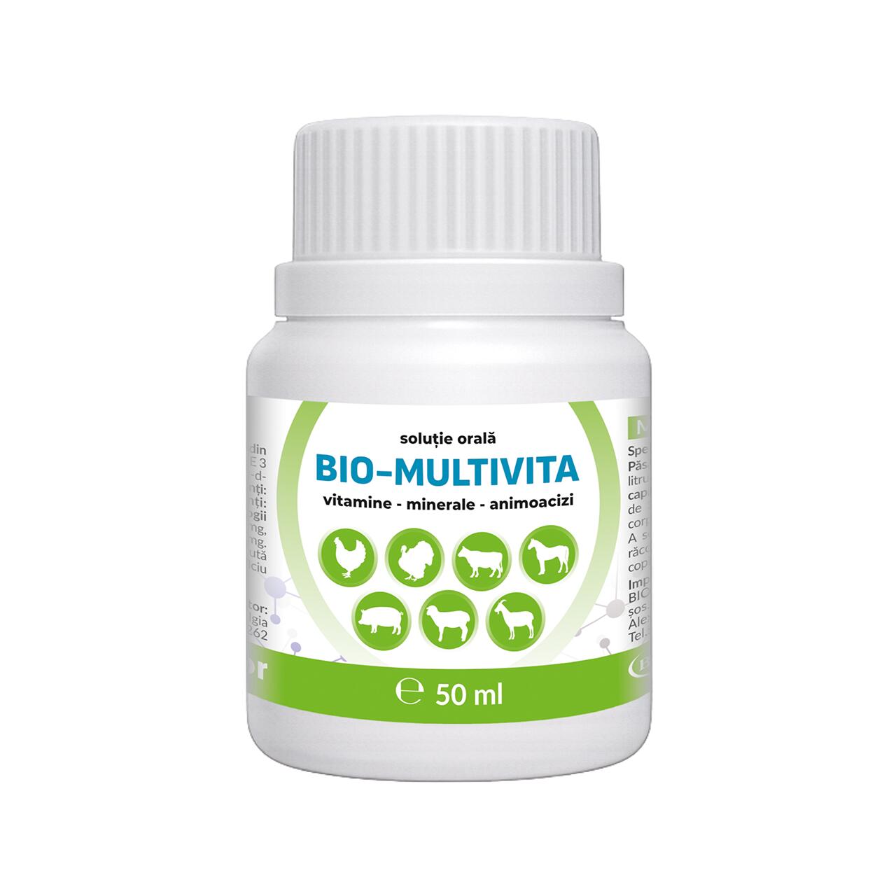 BIO MULTIVITA - soluție orală, este o combinație bine echilibrată de vitamine, aminoacizi și săruri minerale pentru păsări, viței, bovine, ovine și caprine.