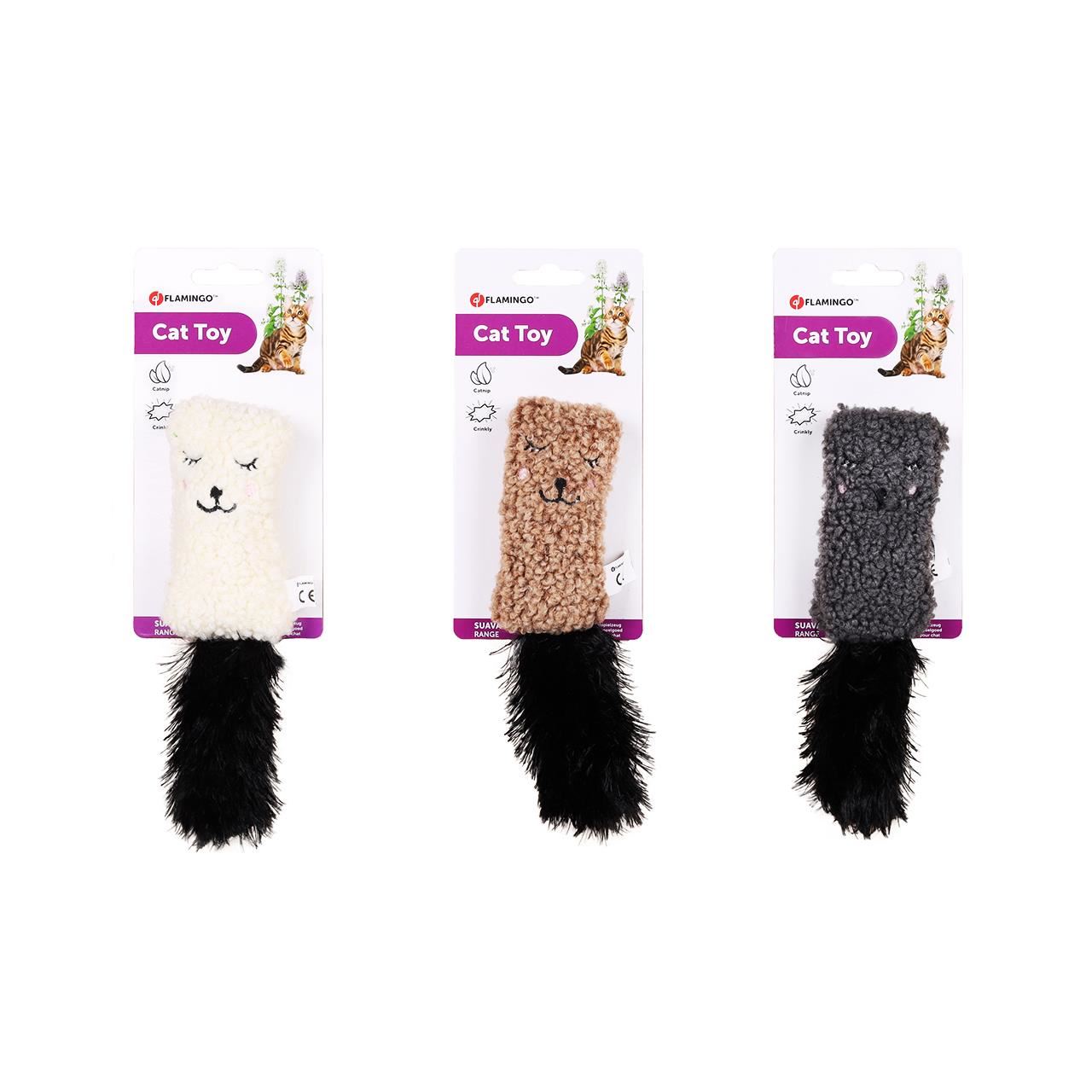 JUCARIE PENTRU PISICI FLAMINGO PERNA SUAVA CU FULG SI CATNIP CULORI MULTIPLE 5x3,5x20 CM