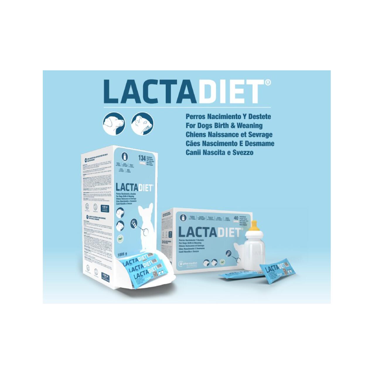 Supliment alimentar pentru alăptare pe bază de lapte degresat, vitamine, oligoelemente și ulei de pește bogat în Omega 3 (DHA & EPA). LactaDIET Naștere și Înțărcare furnizează toate substanțele nutritive necesare pentru cățeii, iepurii și rozătoarele care nu pot să sugă sau când aportul de lapte este insuficient. Conținutul în acizii grași Omega 3 ajută la dezvoltarea normală, facilitează dezvoltarea cerebrală și vizuală și stimulează sistemul imunitar.