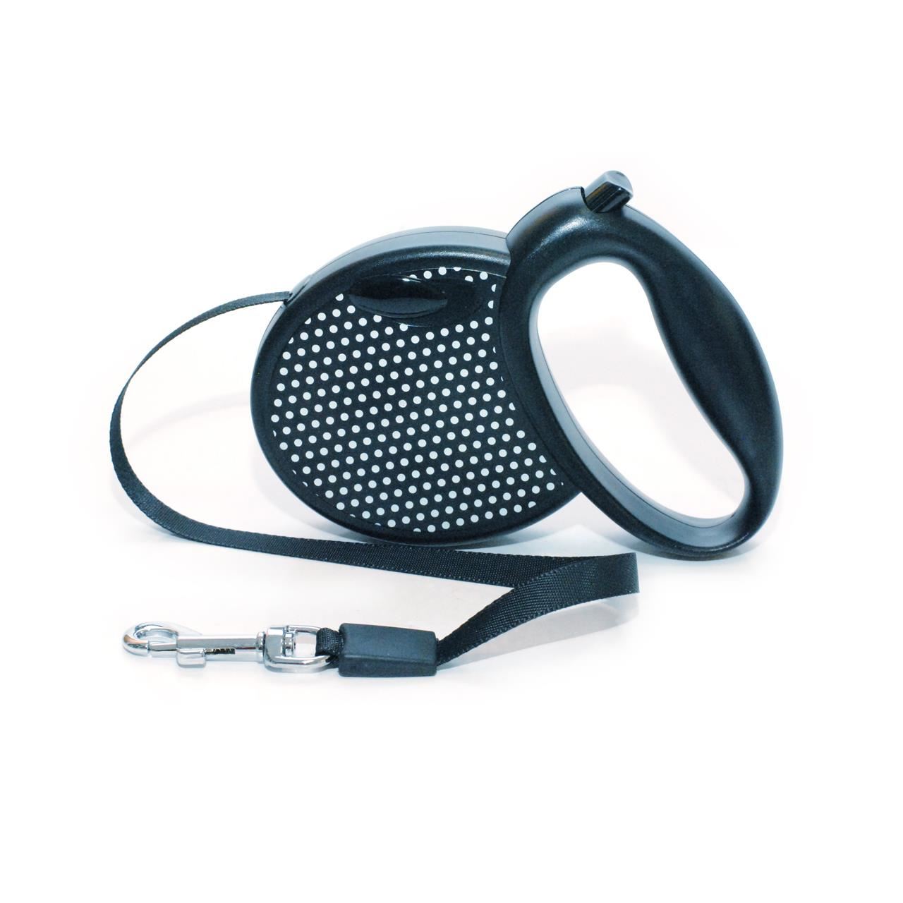 Este o lesa care ofera siguranta si usurinta in utilizare. Datorita mecanismului unic omologat la nivel international, care permite mentinerea benzii intinse in permanenta, lesa nu se va innoda, nu vor fi probleme la retragerea lesei cand veti chema cainele langa dumneavoastra si, de asemenea, nu vor aparea zmucituri necontrolate cand veti actiona lesa.