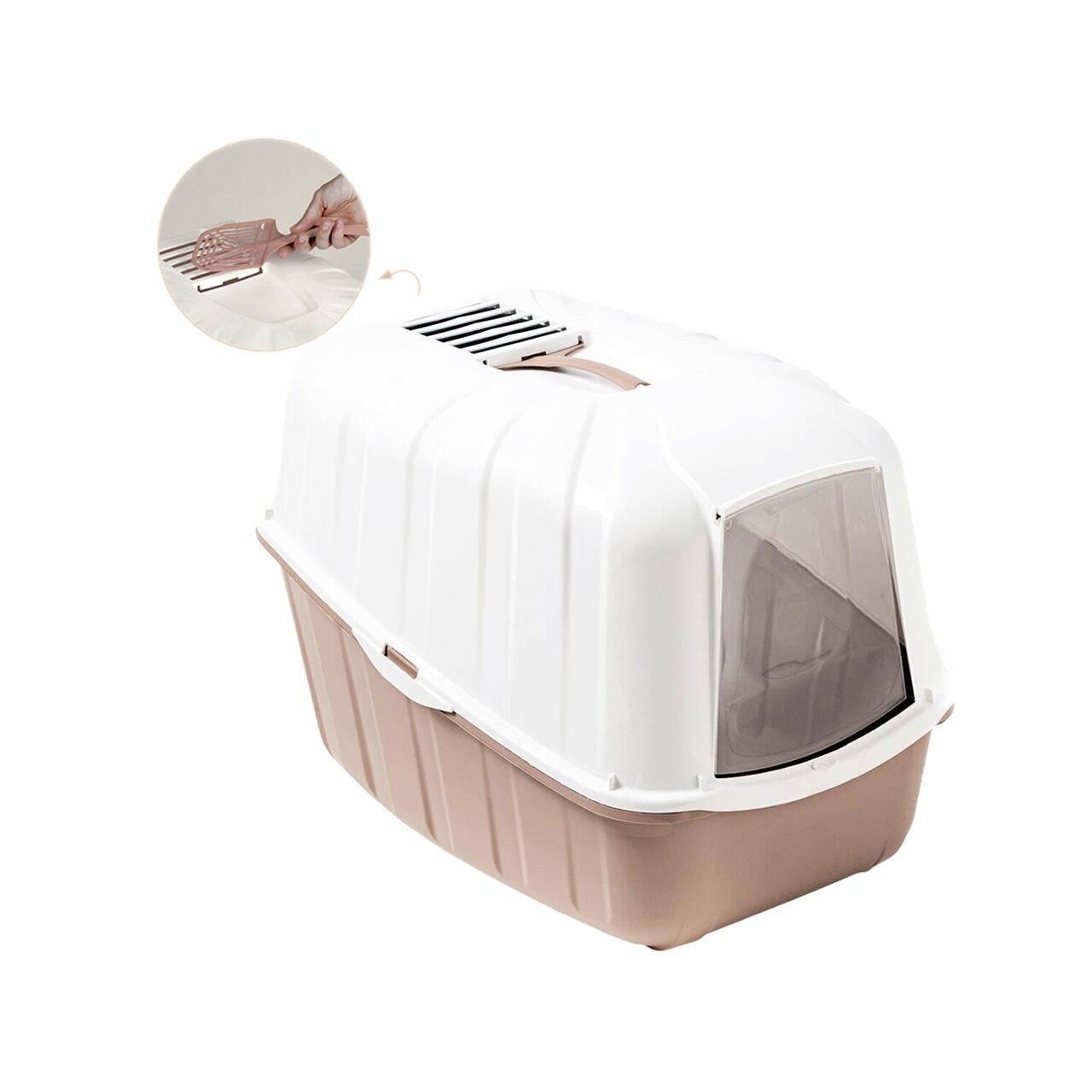 Uşiţa din material plastic previne răspândirea nisipului prin casă, animăluţul are mai multă intimitate şi se simte mai în siguranţă, iar mirosurile neplăcute sunt ţinute în interior. Filtrul de carbon activ fixat în locul special creat în capacul litierei va opri răspândirea mirosului neplăcut prin casă. Litiera este prevăzută de asemenea și cu lopețică pentru curățarea așternutului absorbant.