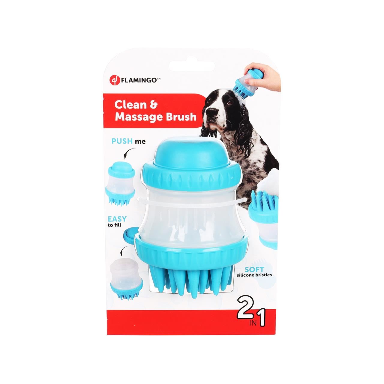 PERIE PENTRU CAINI 2-IN-1 FLAMINGO MASAJ & CURATARE HILDA 7.7x7.7x10.6CM