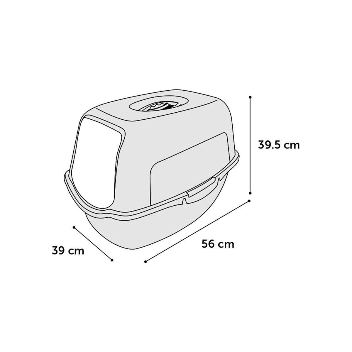Produsul este realizat din material plastic rezistent și durabil, non-toxic pentru pisici. Litiera este acoperită, pentru a oferi felinei un spațiu intim, în care ea să se simtă în siguranță și pentru a limita împrăștierea așternutului, excrementelor și a mirosului acestora.