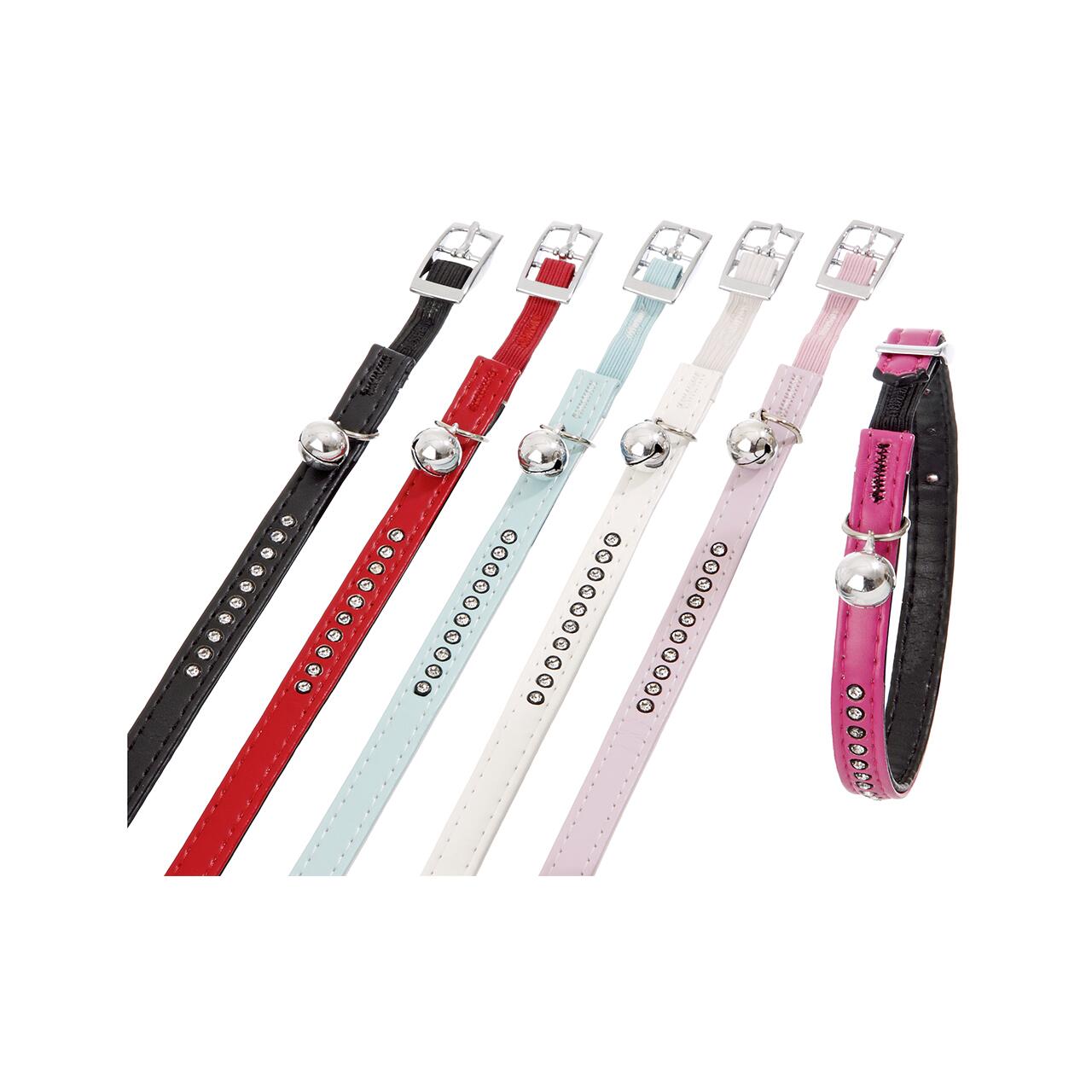 • Prevăzută cu cataramă, clopoțel și strasuri