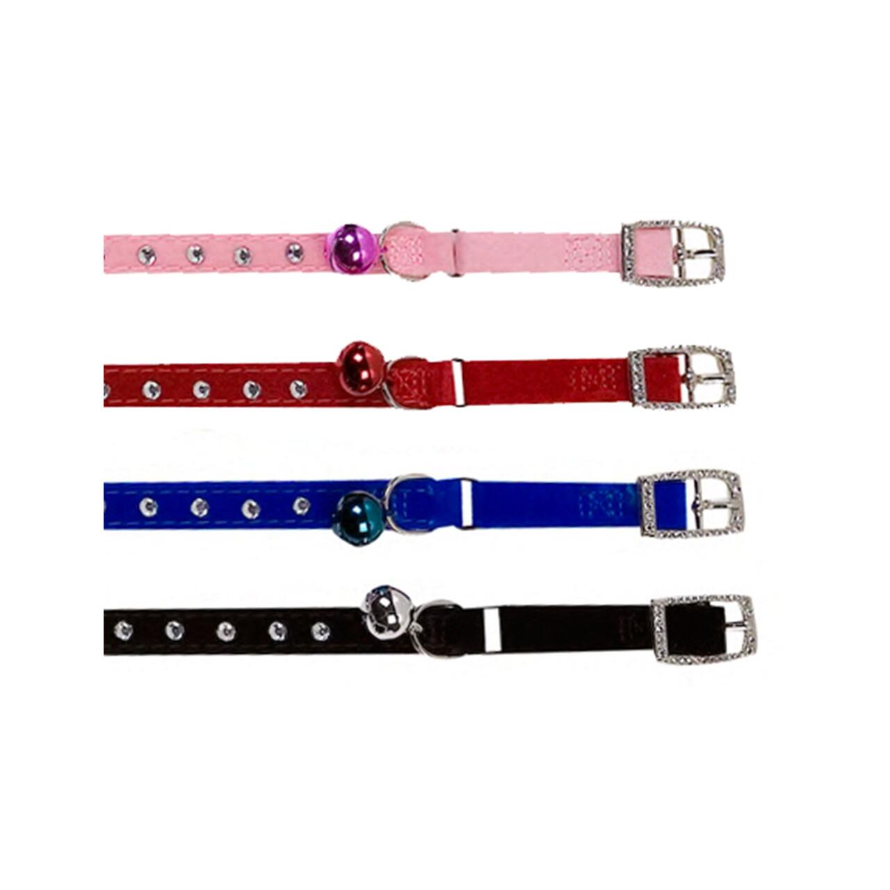 Această zgardă drăguță de pisică confecționată din velur cu strasuri și clopoțel este super ușor de folosit.