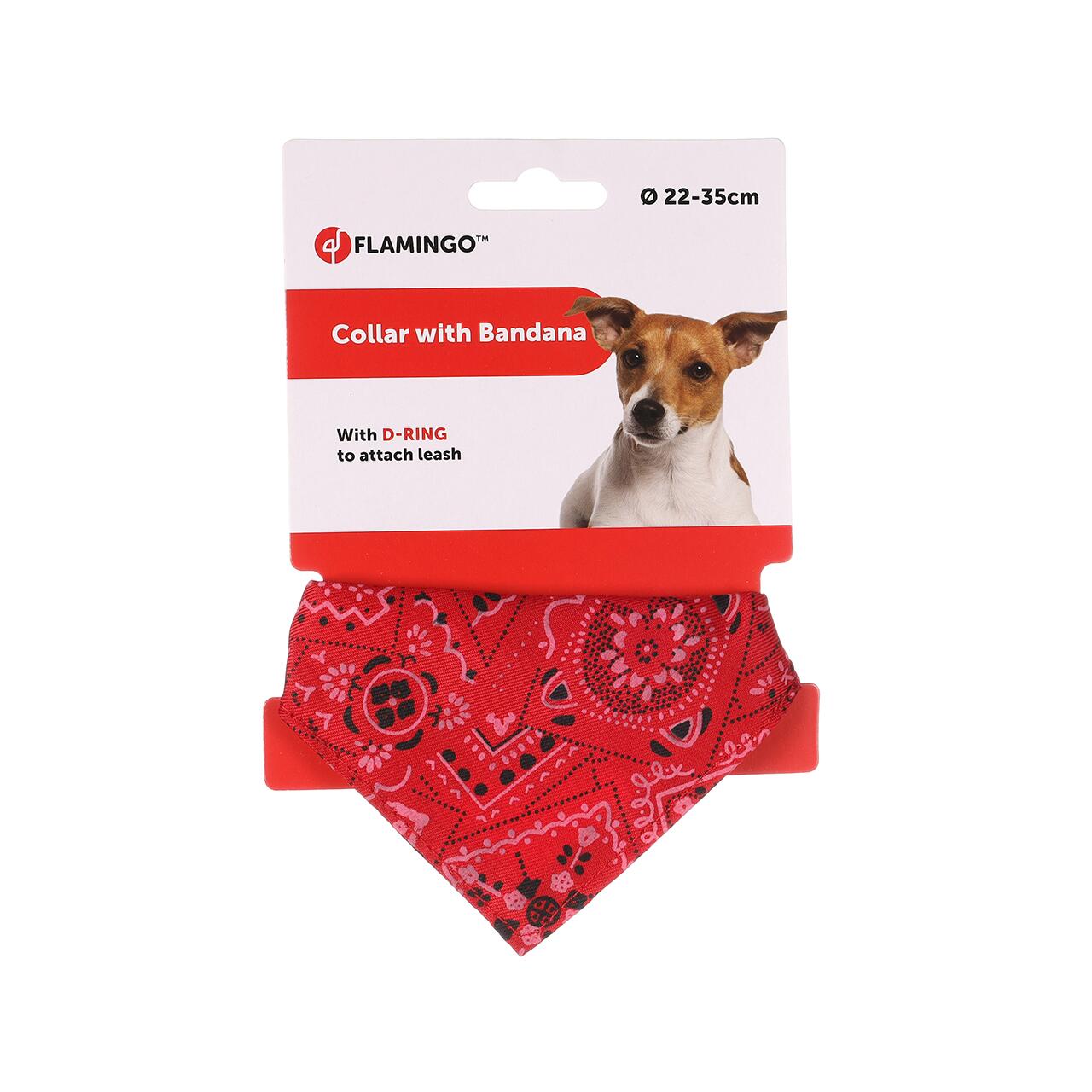 ZGARDĂ PENTRU CÂINI FLAMINGO ROȘIE CU BANDANĂ 22-35CM