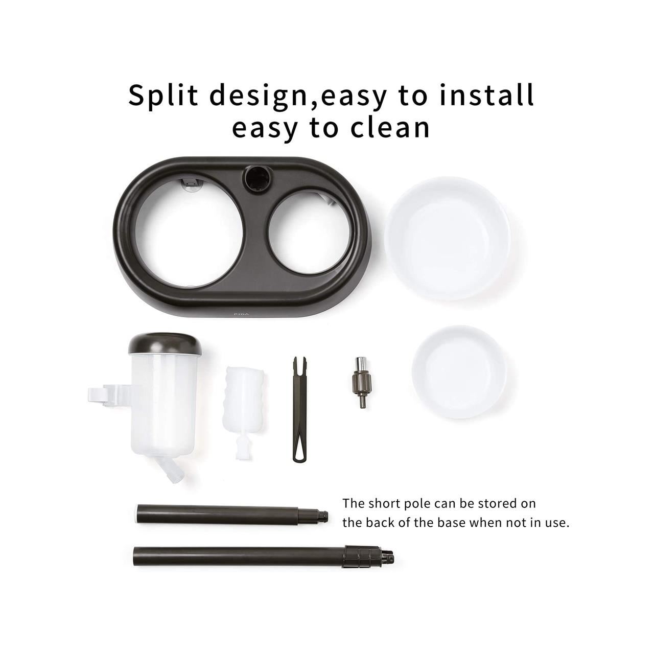 Înălțime reglabilă: distribuitorul de apă poate fi atârnat pe stâlpul detașabil cu înălțime reglabilă până la 55 cm.