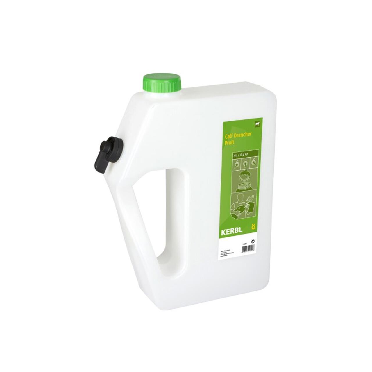 Bidonul Calf Drencher Profi de la Kerbl, cu sondă flexibilă este folosit pentru tratamentul cu electroliți la viței.