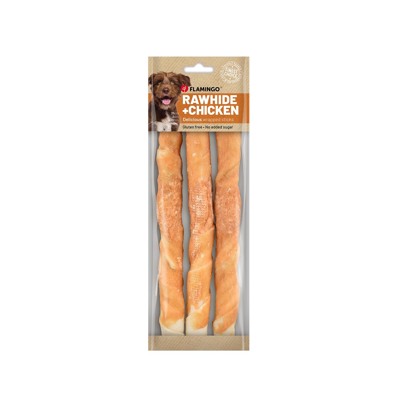 RECOMPENSE PENTRU CÂINI SNACK BATON VITĂ ȘI PUI FLAMINGO 25CM 240G (3BUCx80G)