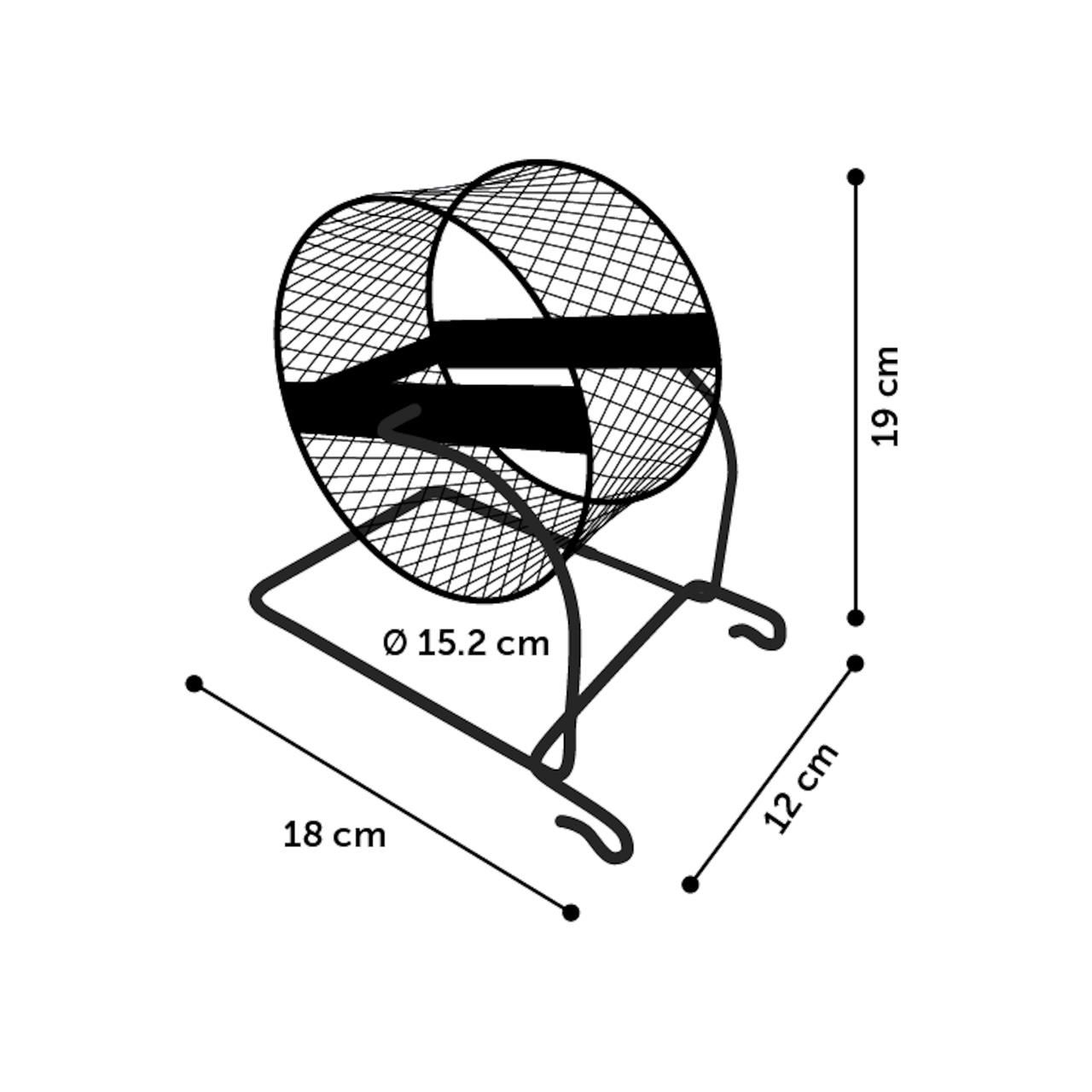 Suportul pe care este fixată roata oferă flexibilitate în utilizare: poate fi așezată pe podeaua cuștii sau agățată de grilajul acesteia.