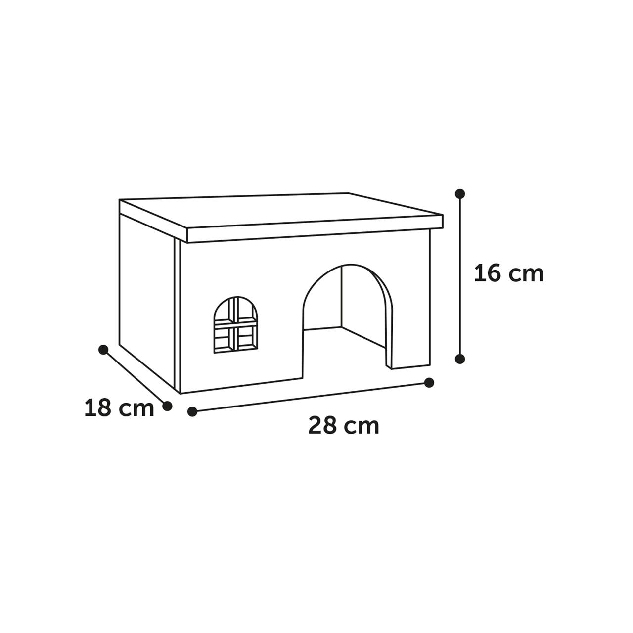 Căsuță confortabilă și solidă, confecționată din lemn, pentru rozătoare mici – hamsteri, porcușori de Guineea și iepuri mici.
