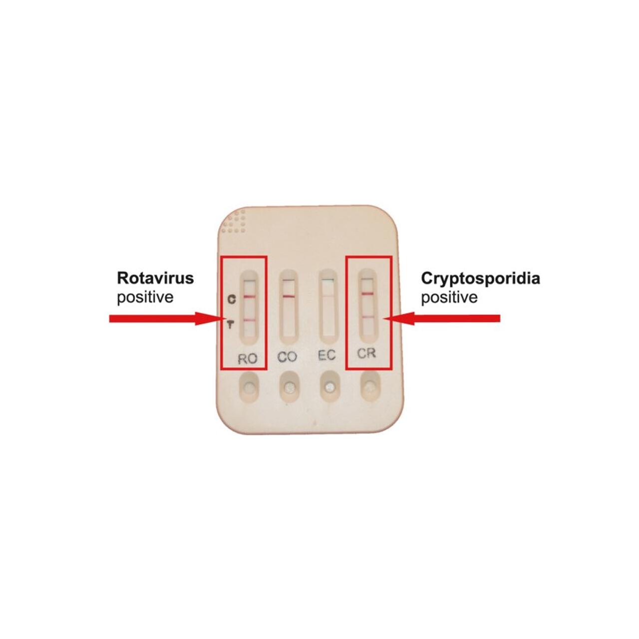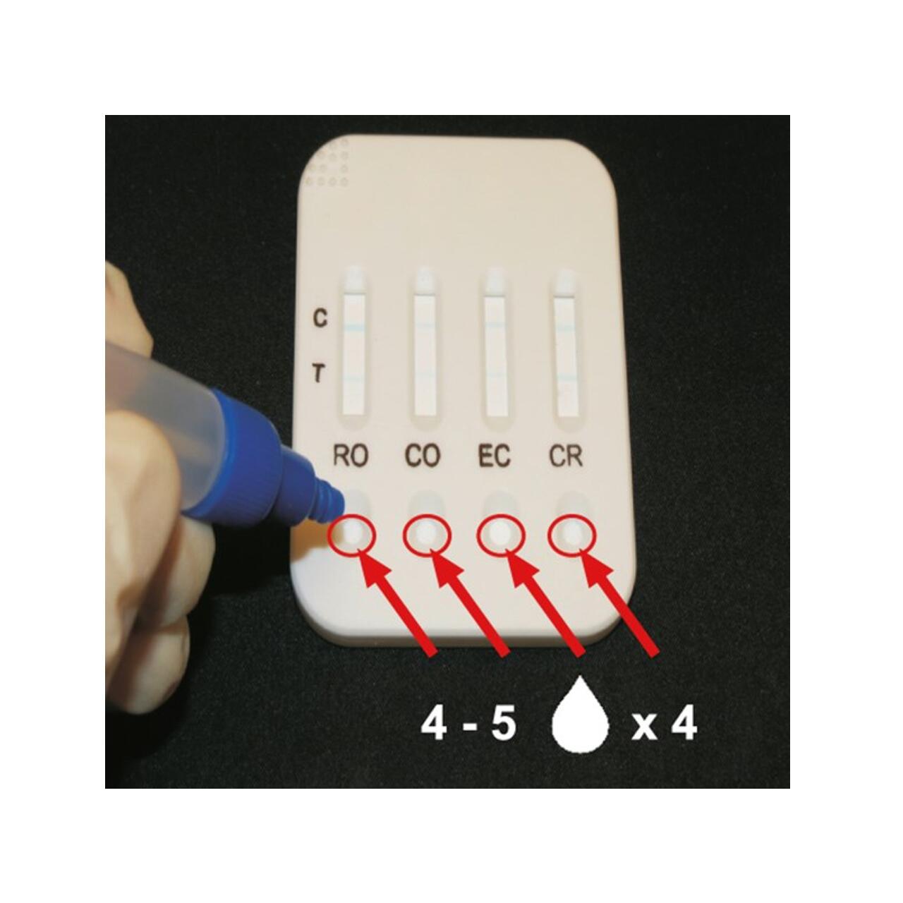 Test pentru detectarea rapidă a Rotavirusului, Coronavirus bovin( BCV), E.coli-K99 și Cryptosporidium parvum în materiile fecale ale vacilor și vițeilor.